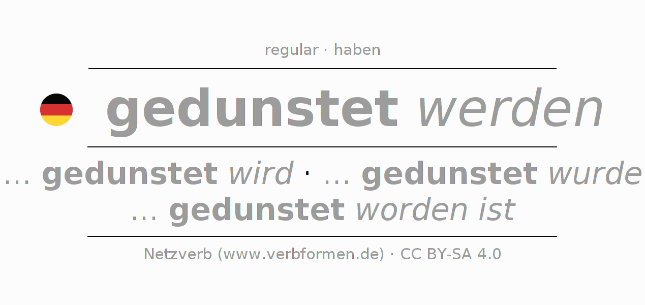 - Infinitive II: gedunstet worden sein, gedunstet worden zu sein