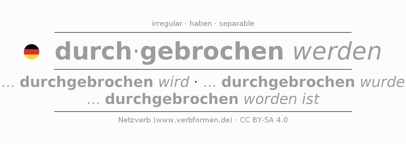 The forms of conjugation in the imperative Passive present for the verb durch-brechen (hat)