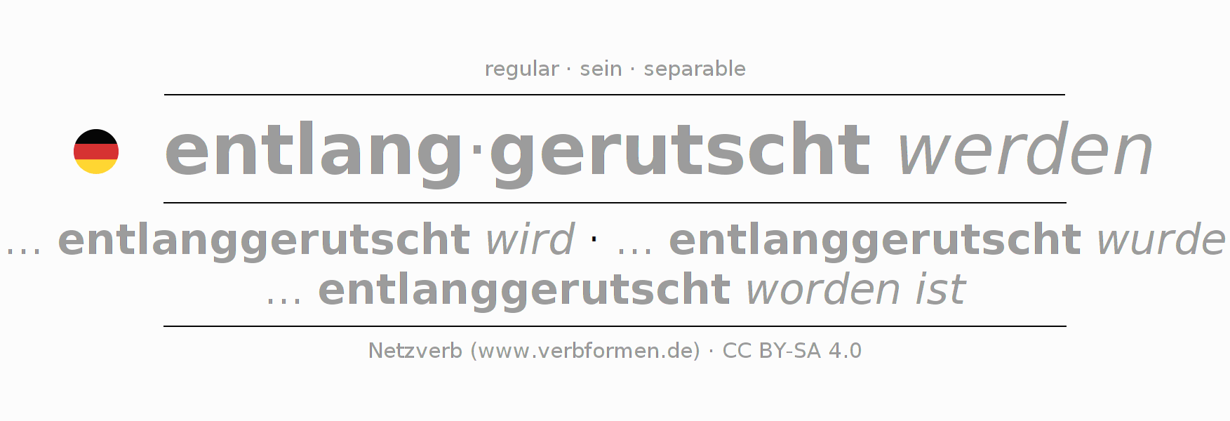 - Infinitive I: entlanggerutscht werden, entlanggerutscht zu werden