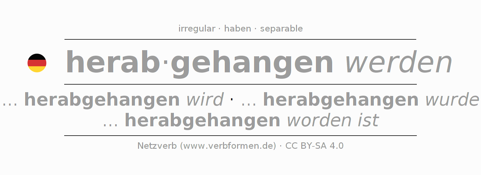 ... herabgehangen wird · ... herabgehangen wurde · ... herabgehangen worden ist