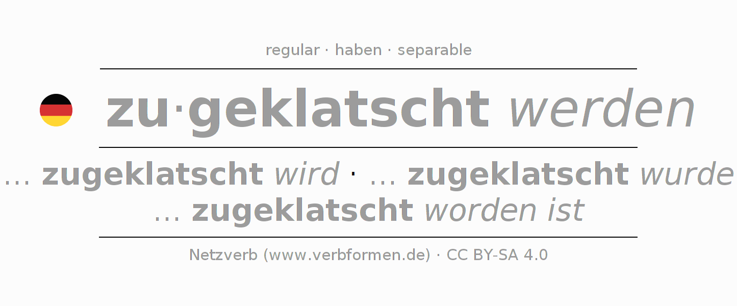 - Infinitive I: zugeklatscht werden, zugeklatscht zu werden