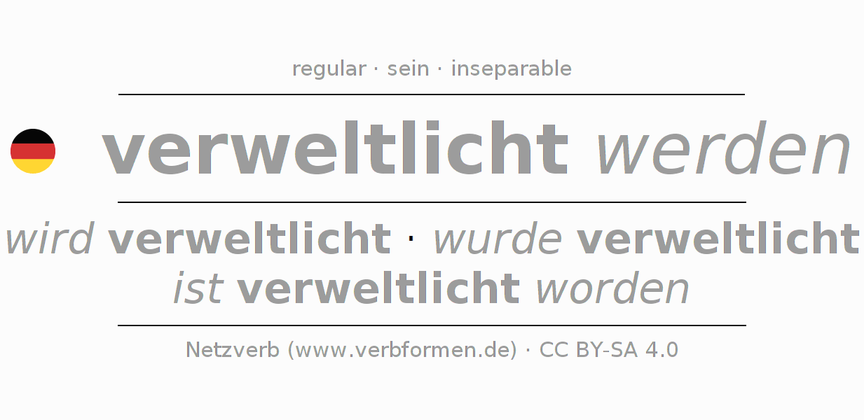 wird verweltlicht · wurde verweltlicht · ist verweltlicht worden