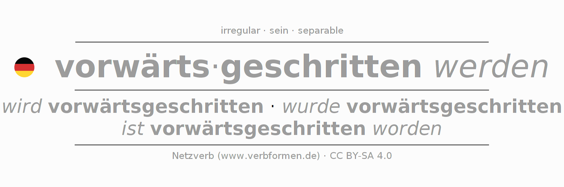 wird vorwärtsgeschritten · wurde vorwärtsgeschritten · ist vorwärtsgeschritten worden