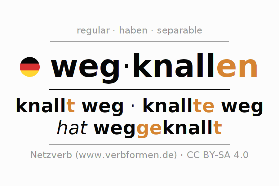 - Present: knall(e) (du) weg, knallen wir weg, knallt (ihr) weg, knallen Sie weg