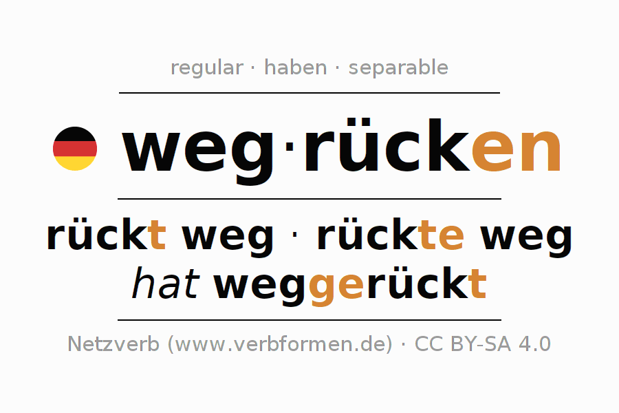 - Present: rück(e) (du) weg, rücken wir weg, rückt (ihr) weg, rücken Sie weg
