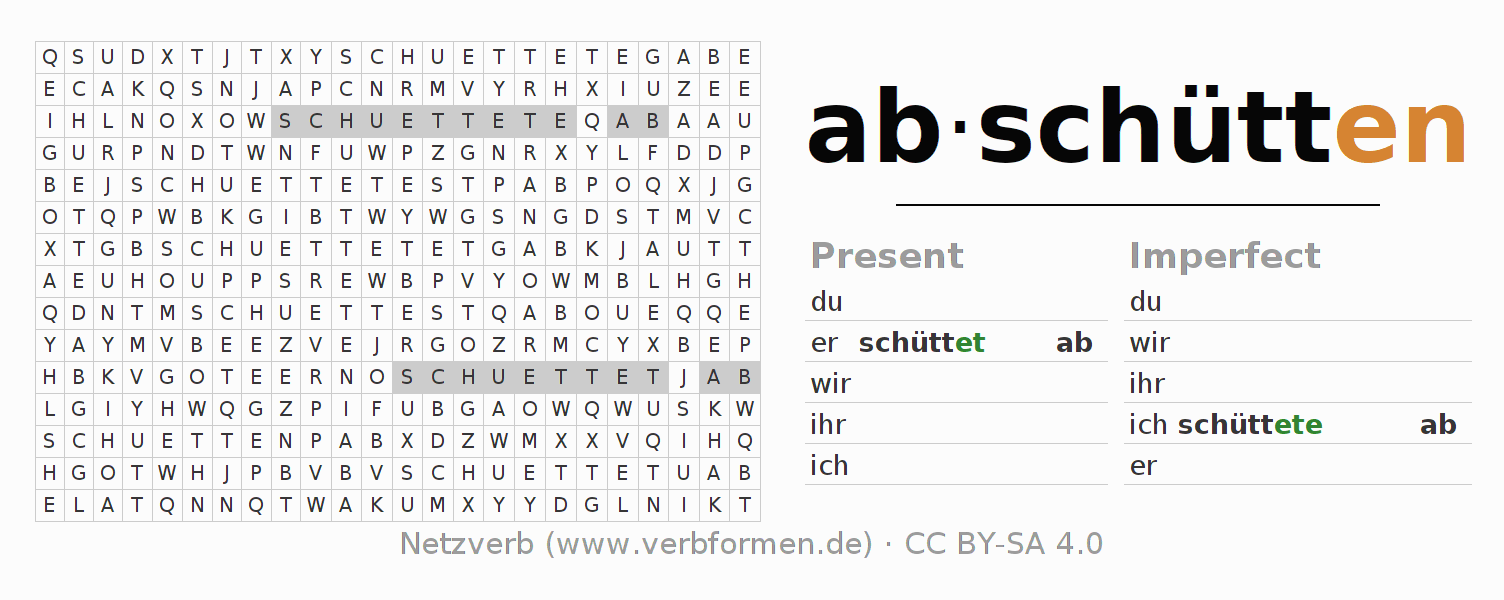 With these search word puzzles you can learn the conjugation of the German verb abschütten.
