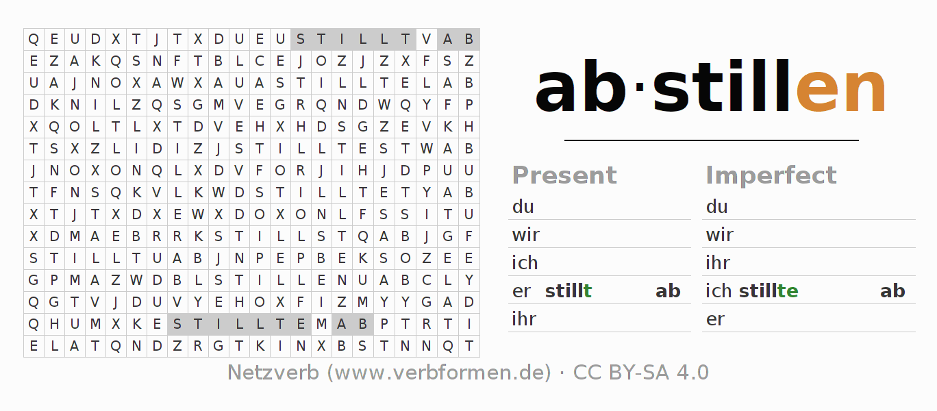 With these search word puzzles you can learn the conjugation of the German verb abstillen.