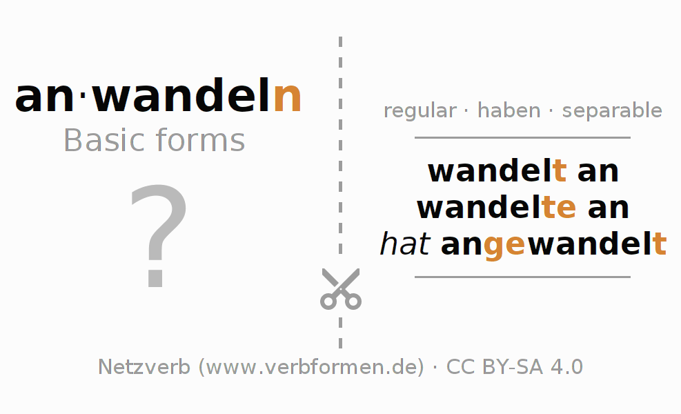 Worksheets are used generally for the conjugation of the verb anwandeln in teaching. The materials can be used as Open Educational Resources (OER) for exercises, for games and as Tasks (CC BY-SA 4.0). There are many different types of tasks available for the verb anwandeln. These are overview sheets with complete conjugation, puzzles and games that require joint learning. The entire educational material is available for free as a PDF download, as pictures and as an interactive browser version. In addition to the tasks, countless examples for anwandeln also provide an aid to using the verb.