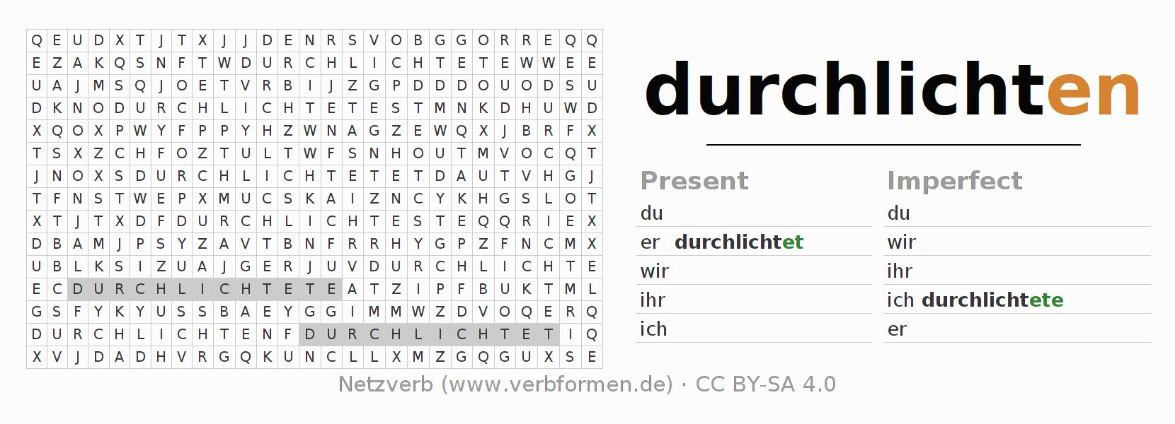 With these search word puzzles you can learn the conjugation of the German verb durchlichten.