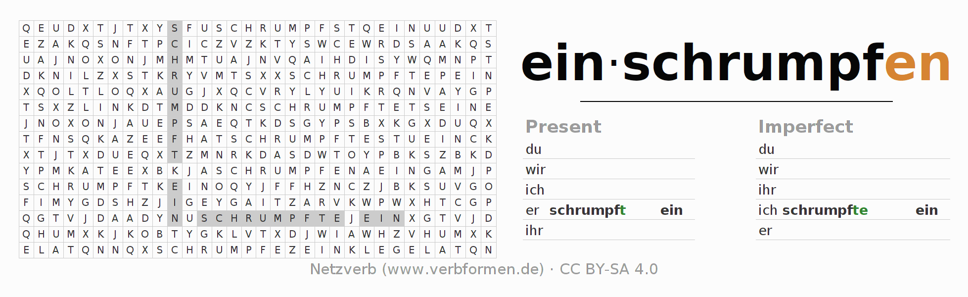 With these search word puzzles you can learn the conjugation of the German verb einschrumpfen.