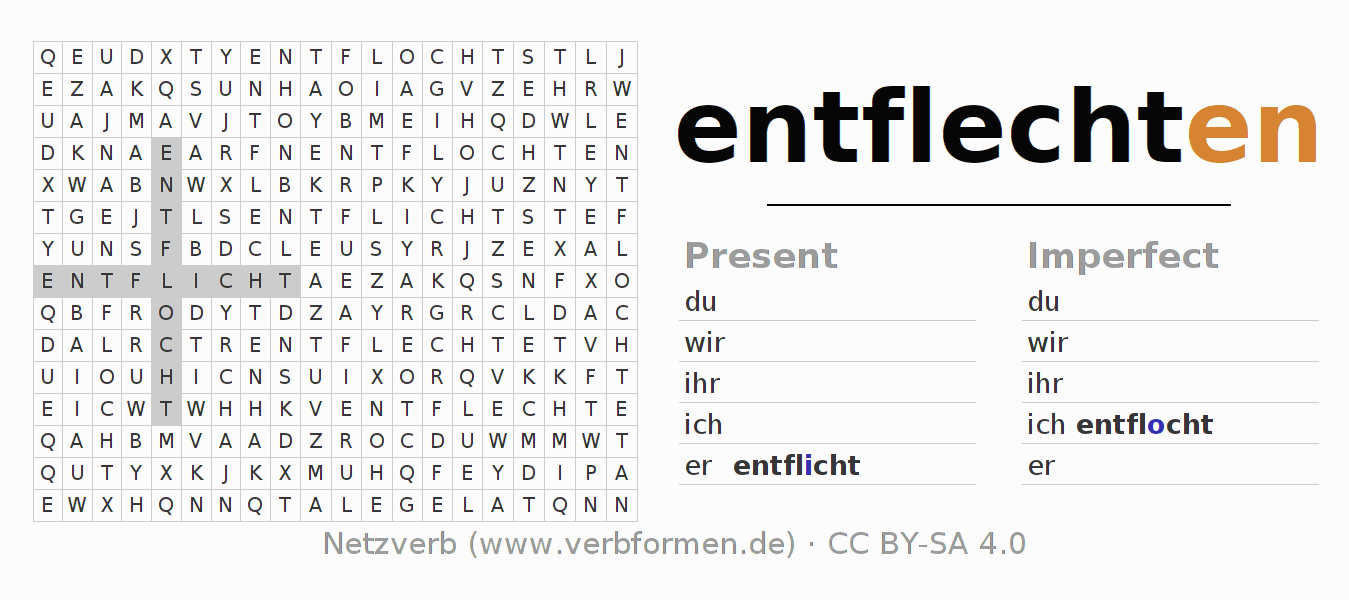 With these search word puzzles you can learn the conjugation of the German verb entflechten.