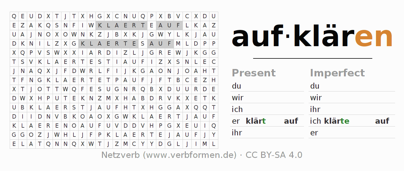 With these search word puzzles you can learn the conjugation of the German verb aufklären.