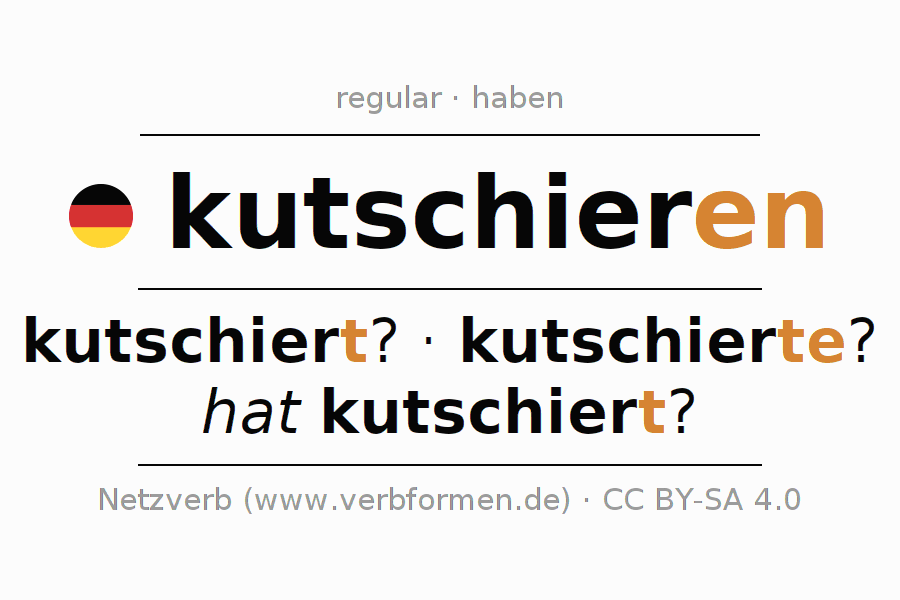 Worksheets are used generally for the conjugation of the verb kutschieren in teaching. The materials can be used as Open Educational Resources (OER) for exercises, for games and as Tasks (CC BY-SA 4.0). There are many different types of tasks available for the verb kutschieren (hat). These are overview sheets with complete conjugation, puzzles and games that require joint learning. The entire educational material is available for free as a PDF download, as pictures and as an interactive browser version. In addition to the tasks, countless examples for kutschieren also provide an aid to using the verb.