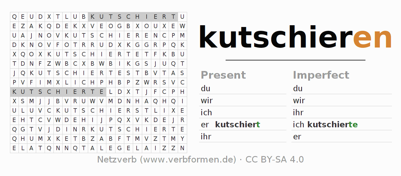 With these search word puzzles you can learn the conjugation of the German verb kutschieren.
