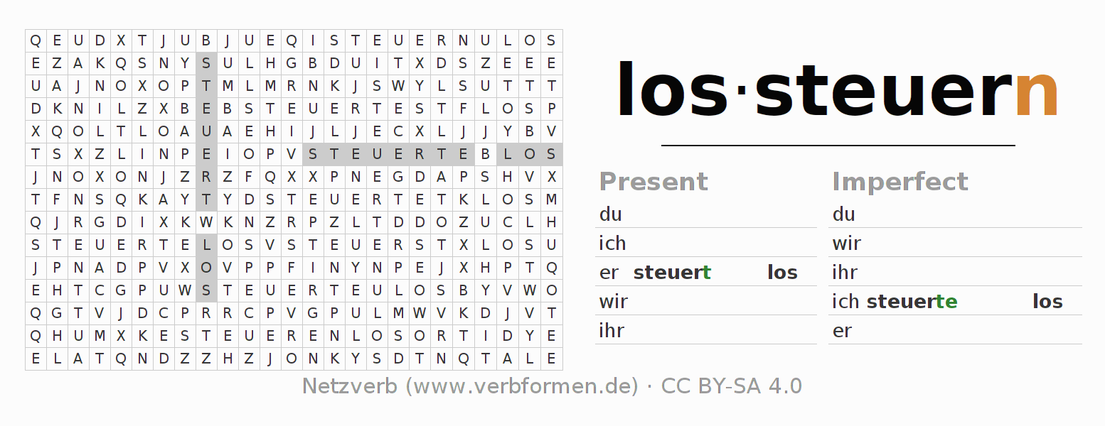 With these search word puzzles you can learn the conjugation of the German verb lossteuern.