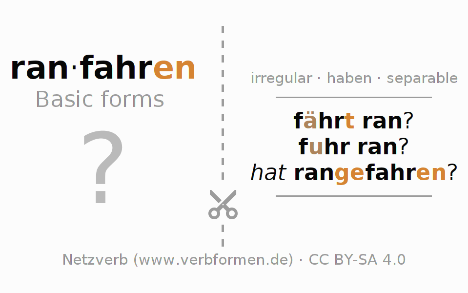 Conjugation tables for all tenses of the verb ranfahren (hat)