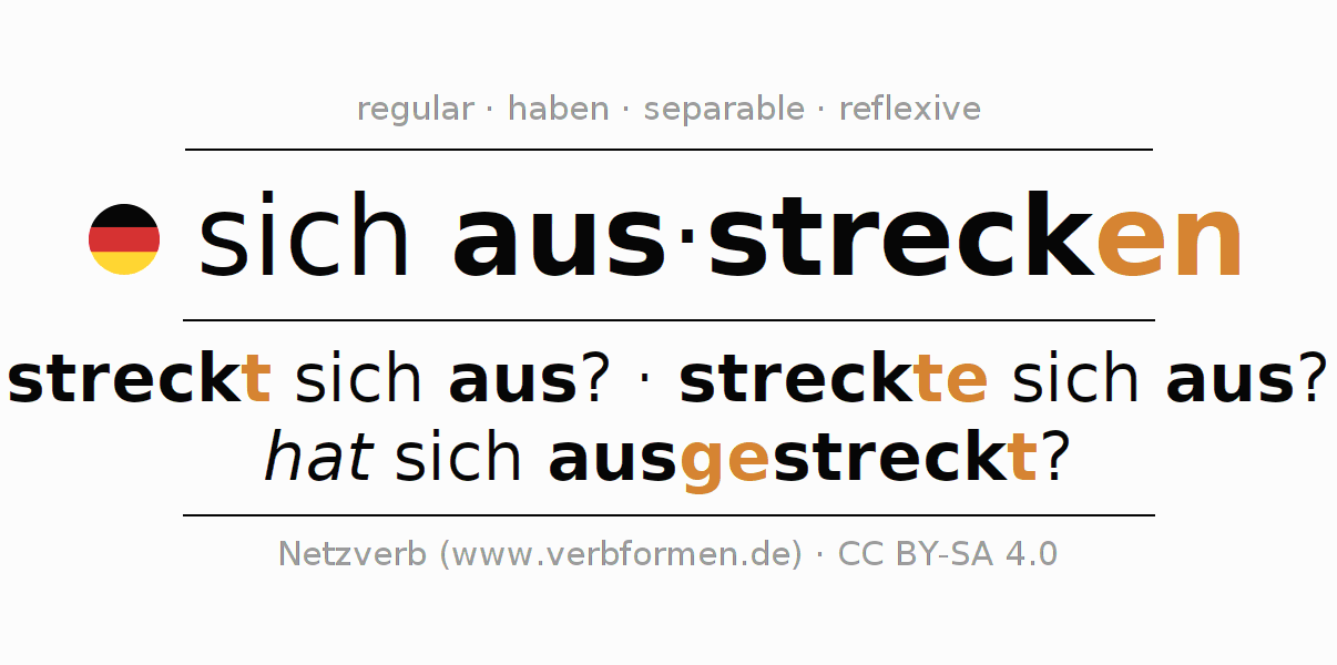 Conjugation tables for all tenses of the verb sich ausstrecken