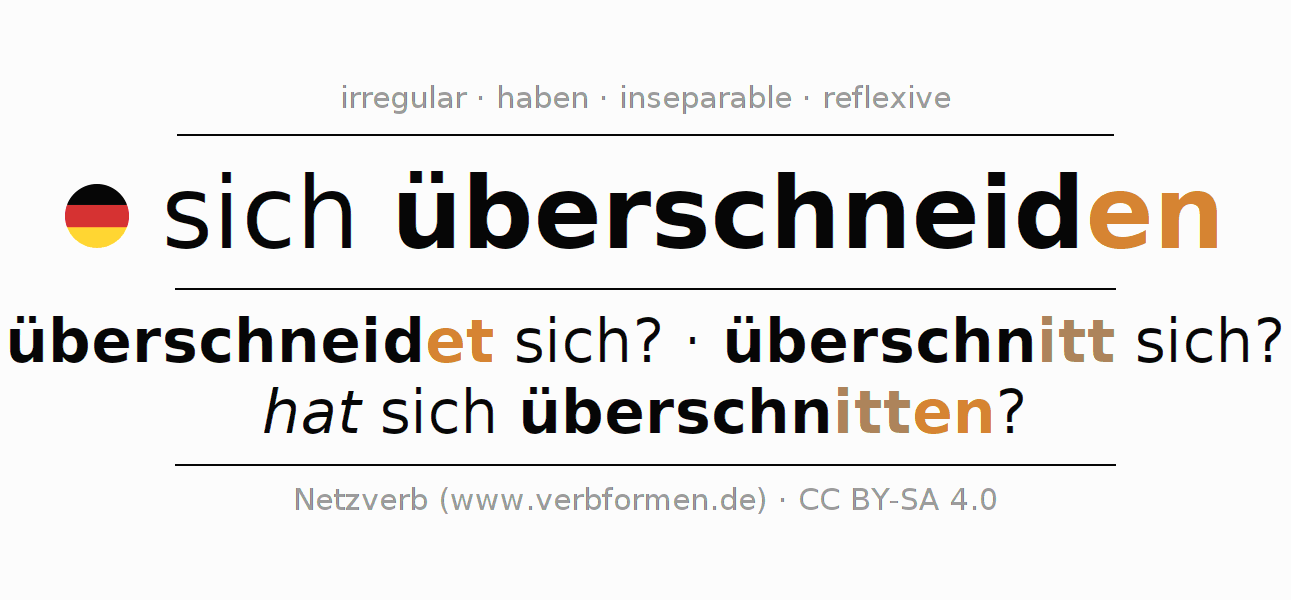 Conjugation tables for all tenses of the verb sich überschneiden