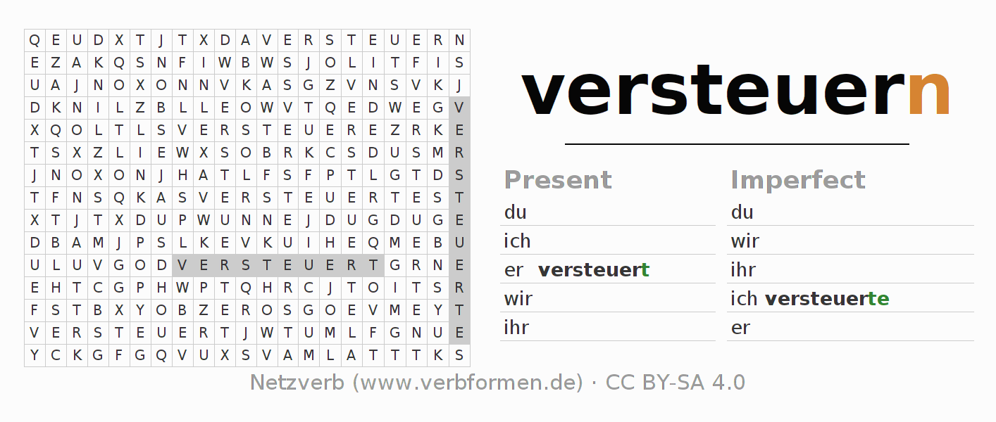 With these search word puzzles you can learn the conjugation of the German verb versteuern.