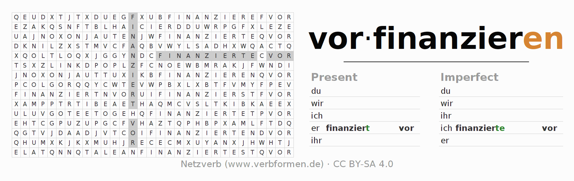 With these search word puzzles you can learn the conjugation of the German verb vorfinanzieren.