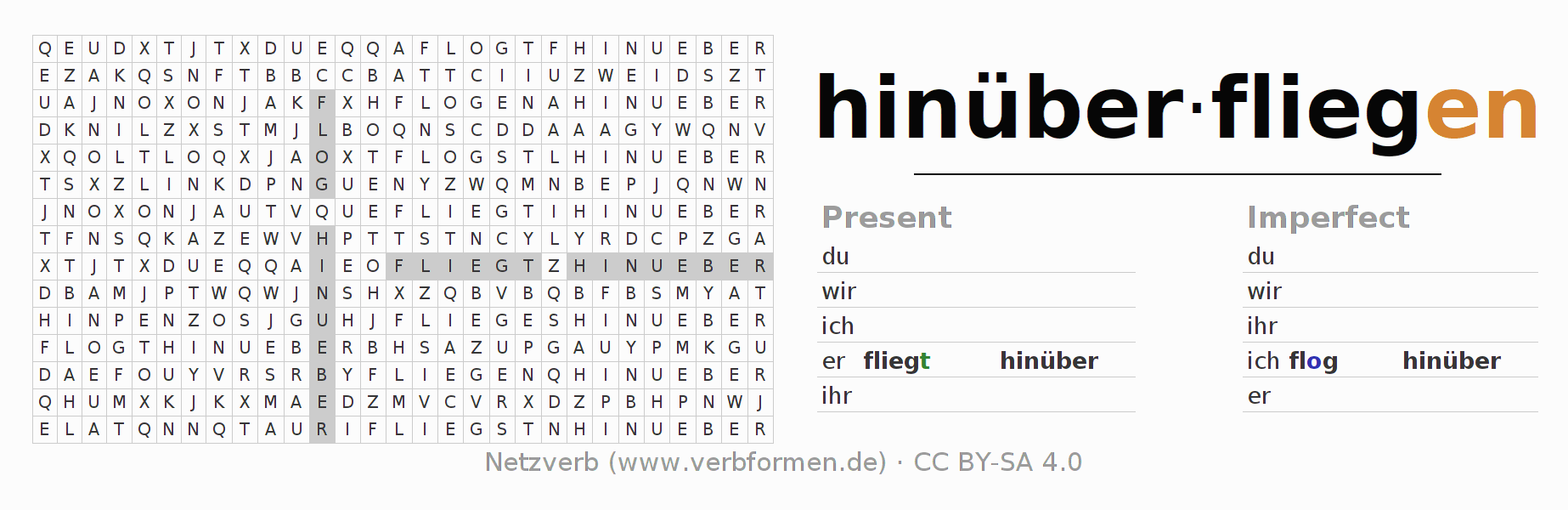 With these search word puzzles you can learn the conjugation of the German verb hinüberfliegen.