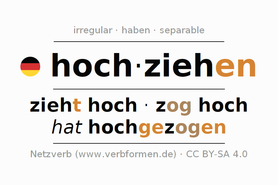 Flash cards, learning cards, learning notes for all tenses of the verb hochziehen (hat)