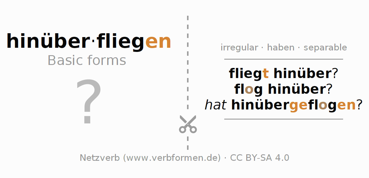 fliegt hinüber? flog hinüber? hat hinübergeflogen? |