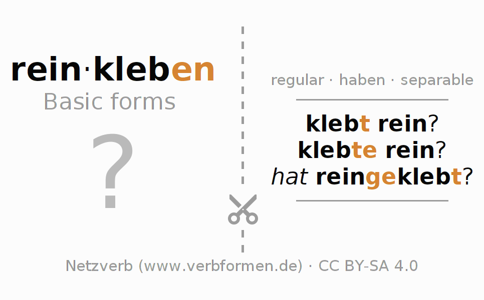 klebt rein? klebte rein? hat reingeklebt? |