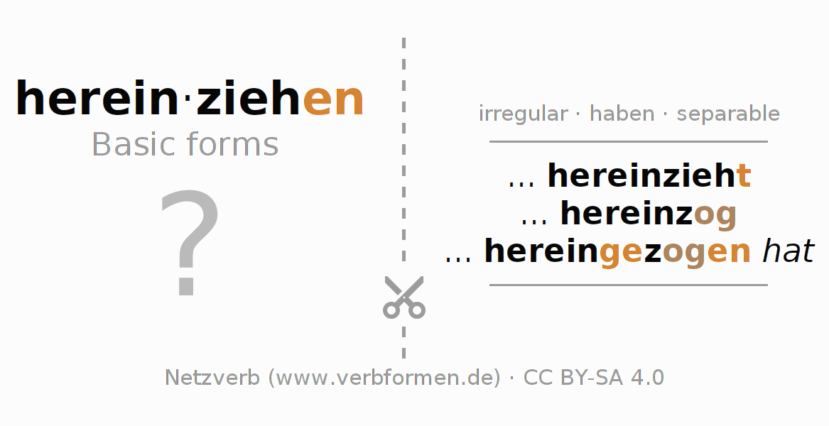 ... hereinzieht ... hereinzog ... hereingezogen hat |