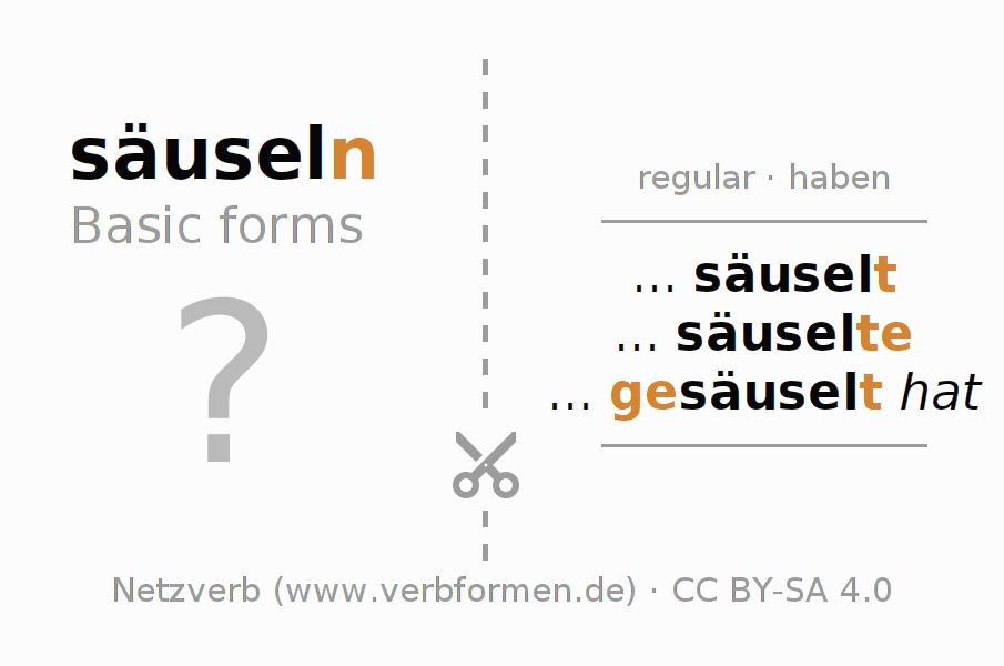 With the flash cards the conjugation of the German verbs can be learned and trained. To do this, follow the tasks on the learning sheets for the verb säuseln. The required verb forms must be solved in the head. They are then compared with the hints on the cards. If agree, you confirm your learning result. If there is a deviation, you should use the hints to memorize the unknown forms. Typically, print the PDF file of the learning cards and fold them as specified. So you can use them on a stack with other verbs for learning. There are also many more worksheets for the verb säuseln. All materials are available as Open Educational Resources (OER) under license CC BY- SA 4.0 and can be used free of charge.