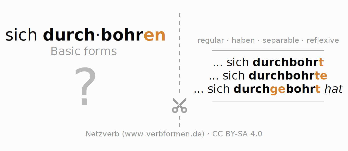 Flash cards for the conjugation of the German verb sich durch-bohren