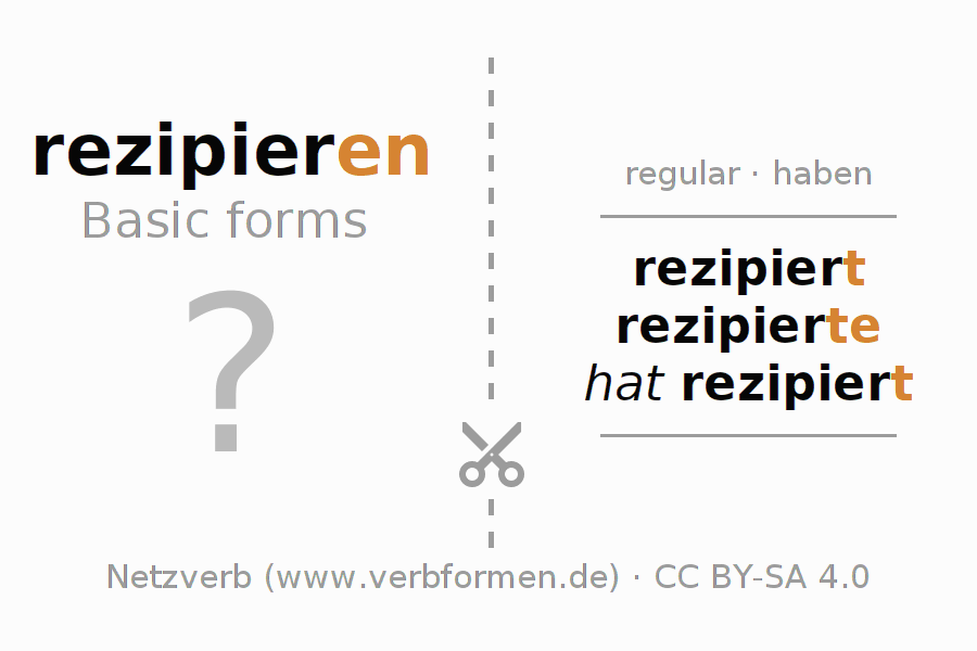 With the flash cards the conjugation of the German verbs can be learned and trained. To do this, follow the tasks on the learning sheets for the verb rezipieren. The required verb forms must be solved in the head. They are then compared with the hints on the cards. If agree, you confirm your learning result. If there is a deviation, you should use the hints to memorize the unknown forms. Typically, print the PDF file of the learning cards and fold them as specified. So you can use them on a stack with other verbs for learning. There are also many more worksheets for the verb rezipieren. All materials are available as Open Educational Resources (OER) under license CC BY- SA 4.0 and can be used free of charge.