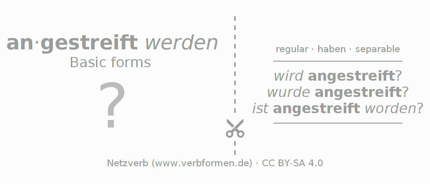 wird angestreift? wurde angestreift? ist angestreift worden? |