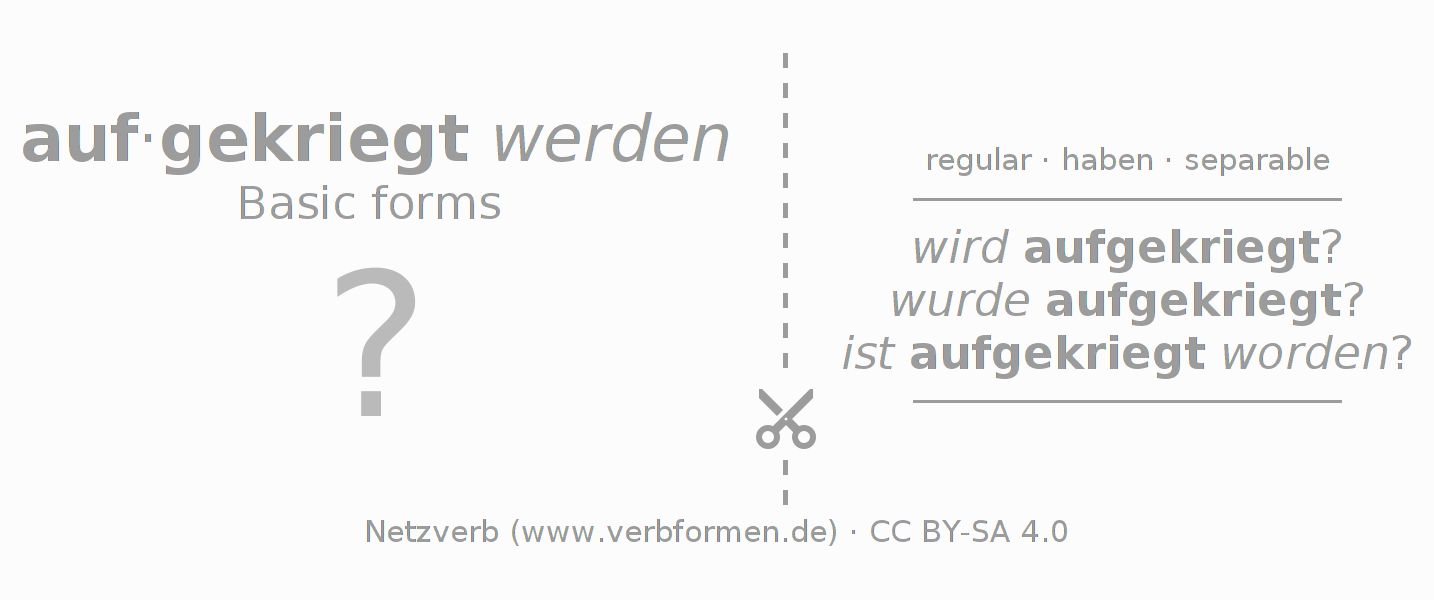 wird aufgekriegt? wurde aufgekriegt? ist aufgekriegt worden? |