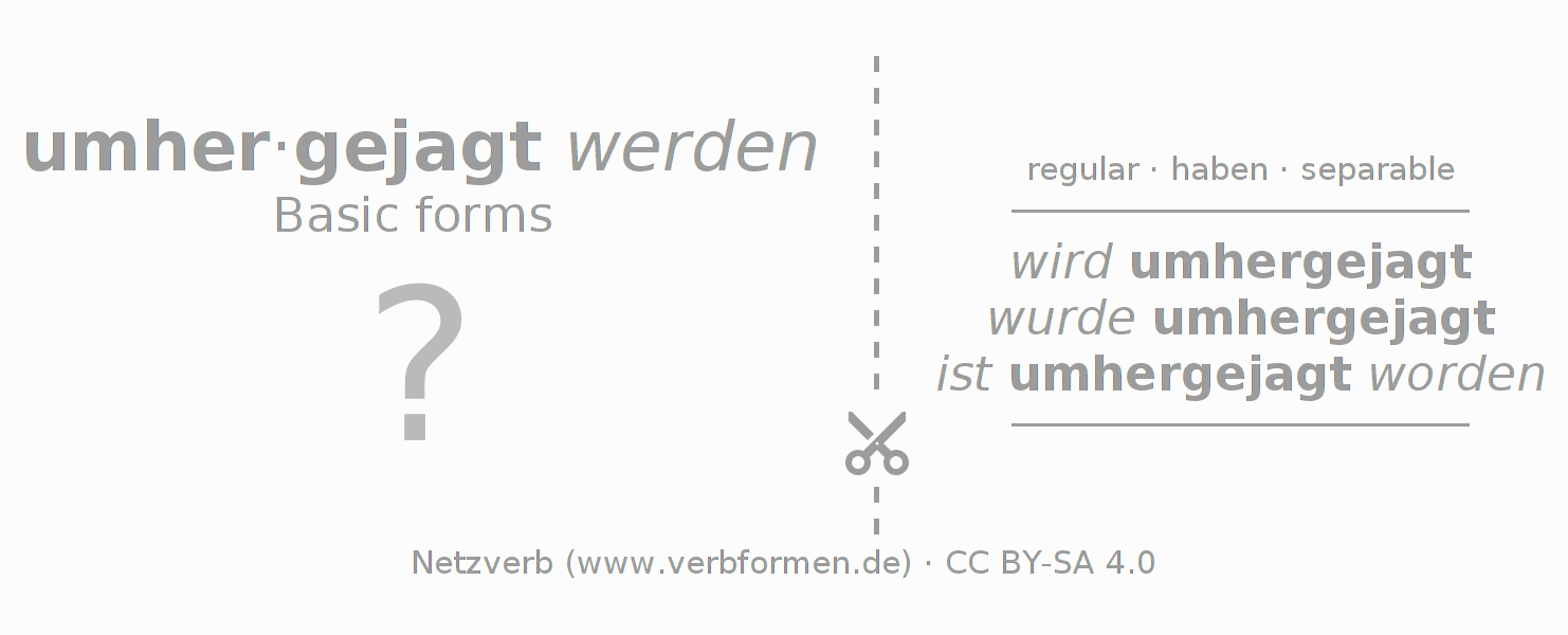 wird umhergejagt wurde umhergejagt ist umhergejagt worden |