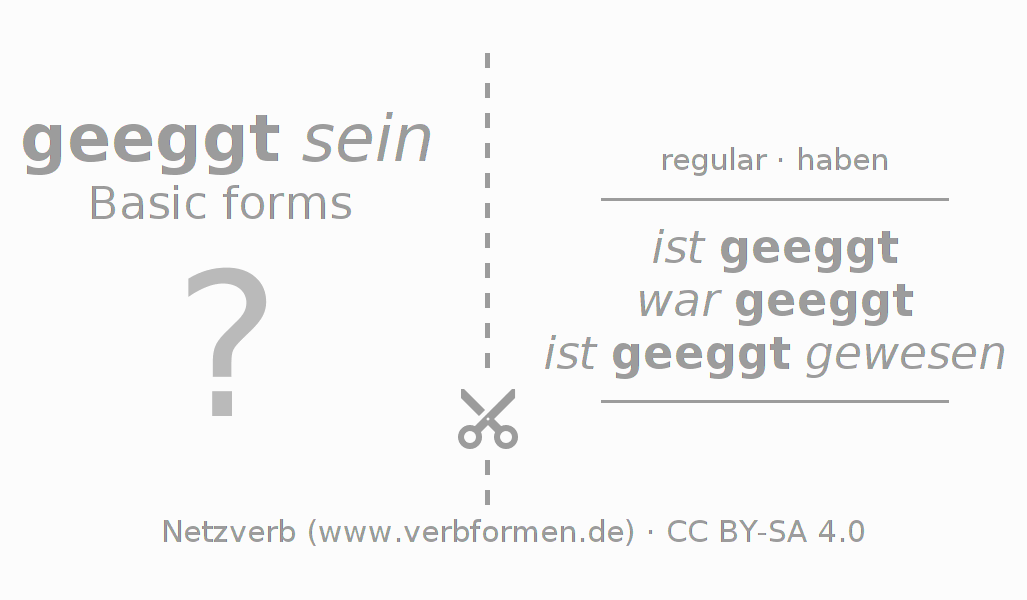 With the flash cards the conjugation of the German verbs can be learned and trained. To do this, follow the tasks on the learning sheets for the verb eggen. The required verb forms must be solved in the head. They are then compared with the hints on the cards. If agree, you confirm your learning result. If there is a deviation, you should use the hints to memorize the unknown forms. Typically, print the PDF file of the learning cards and fold them as specified. So you can use them on a stack with other verbs for learning. There are also many more worksheets for the verb eggen. All materials are available as Open Educational Resources (OER) under license CC BY- SA 4.0 and can be used free of charge.