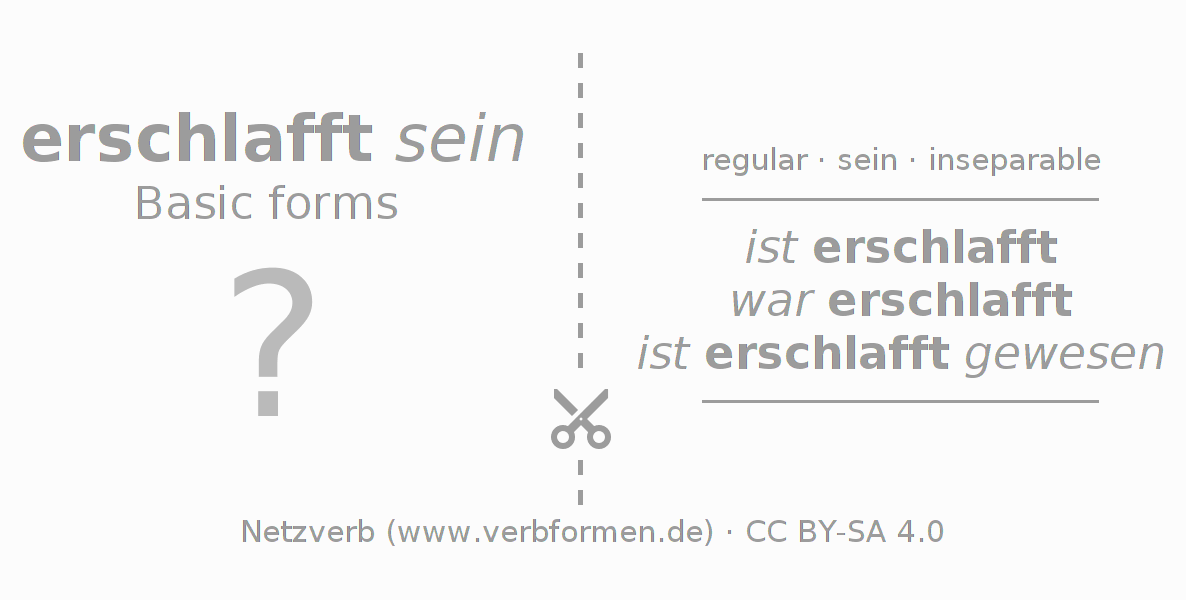 Instruction: Print and cut the learning cards of the erschlaffen. Then place the individual cards for several verbs on a pile and mix. Now the cards can be drawn. The information on the cards must be read in memory. To match your solution, use the information on the learning sheets.
