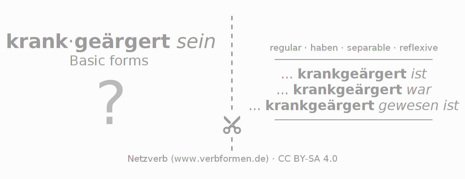 ... krankgeärgert ist ... krankgeärgert war ... krankgeärgert gewesen ist |
