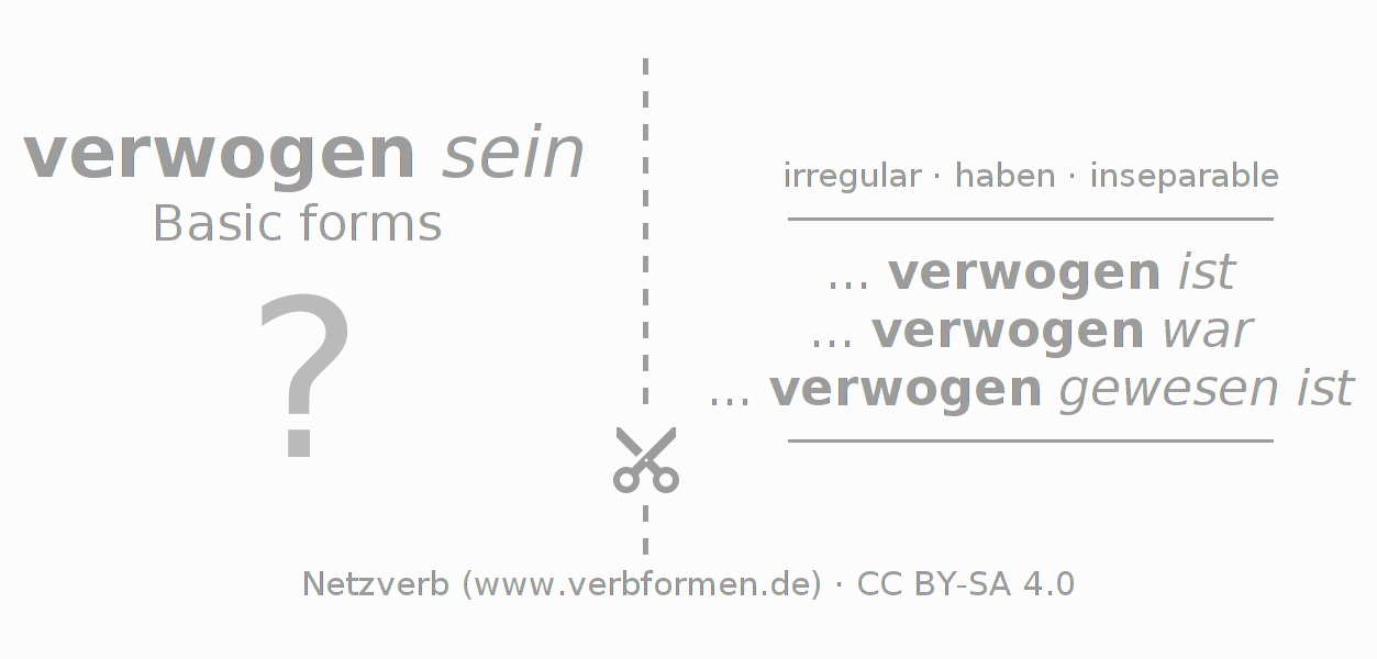 With the flash cards the conjugation of the German verbs can be learned and trained. To do this, follow the tasks on the learning sheets for the verb verwiegen. The required verb forms must be solved in the head. They are then compared with the hints on the cards. If agree, you confirm your learning result. If there is a deviation, you should use the hints to memorize the unknown forms. Typically, print the PDF file of the learning cards and fold them as specified. So you can use them on a stack with other verbs for learning. There are also many more worksheets for the verb verwiegen. All materials are available as Open Educational Resources (OER) under license CC BY- SA 4.0 and can be used free of charge.