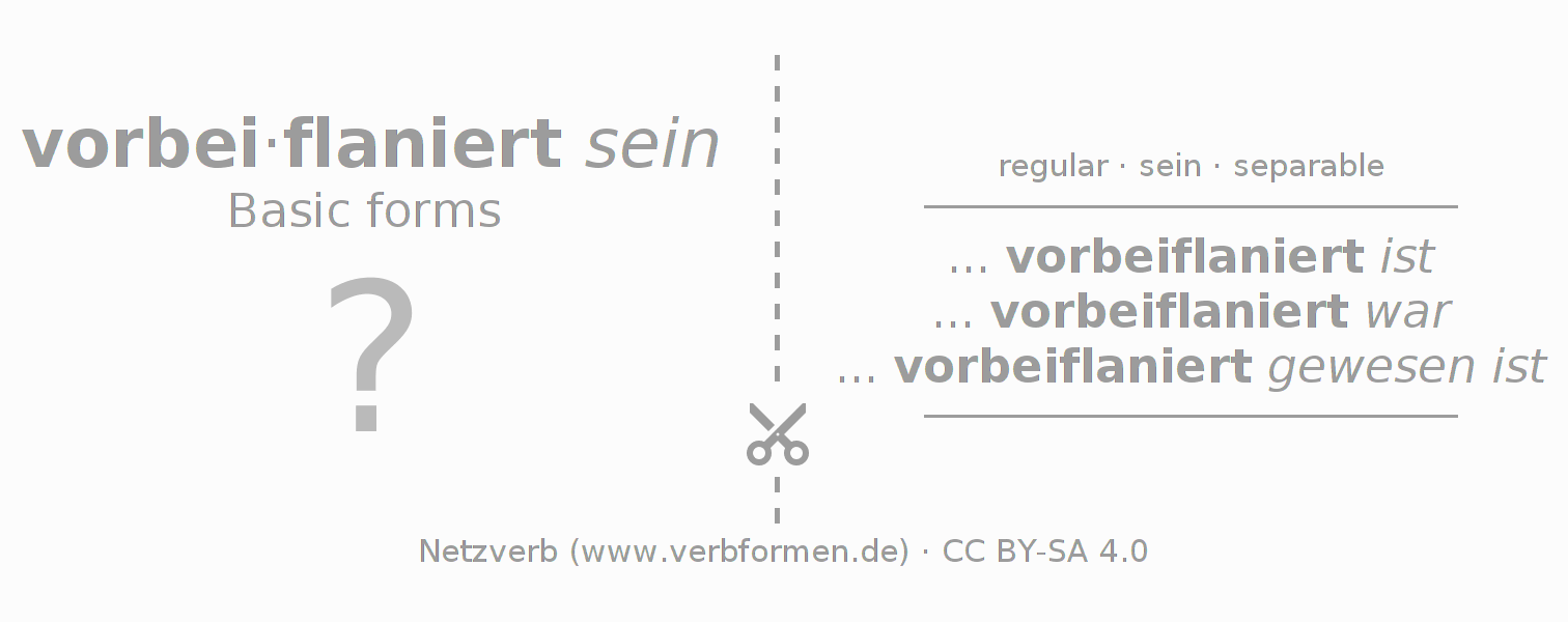 ... vorbeiflaniert ist ... vorbeiflaniert war ... vorbeiflaniert gewesen ist |