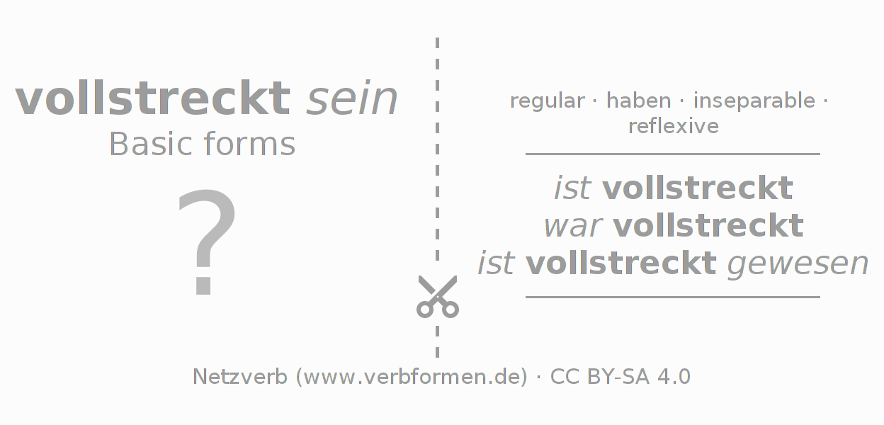 Instruction: Print and cut the learning cards of the sich vollstrecken. Then place the individual cards for several verbs on a pile and mix. Now the cards can be drawn. The information on the cards must be read in memory. To match your solution, use the information on the learning sheets.