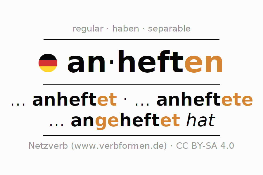 Conjugation tables for all tenses of the verb anheften