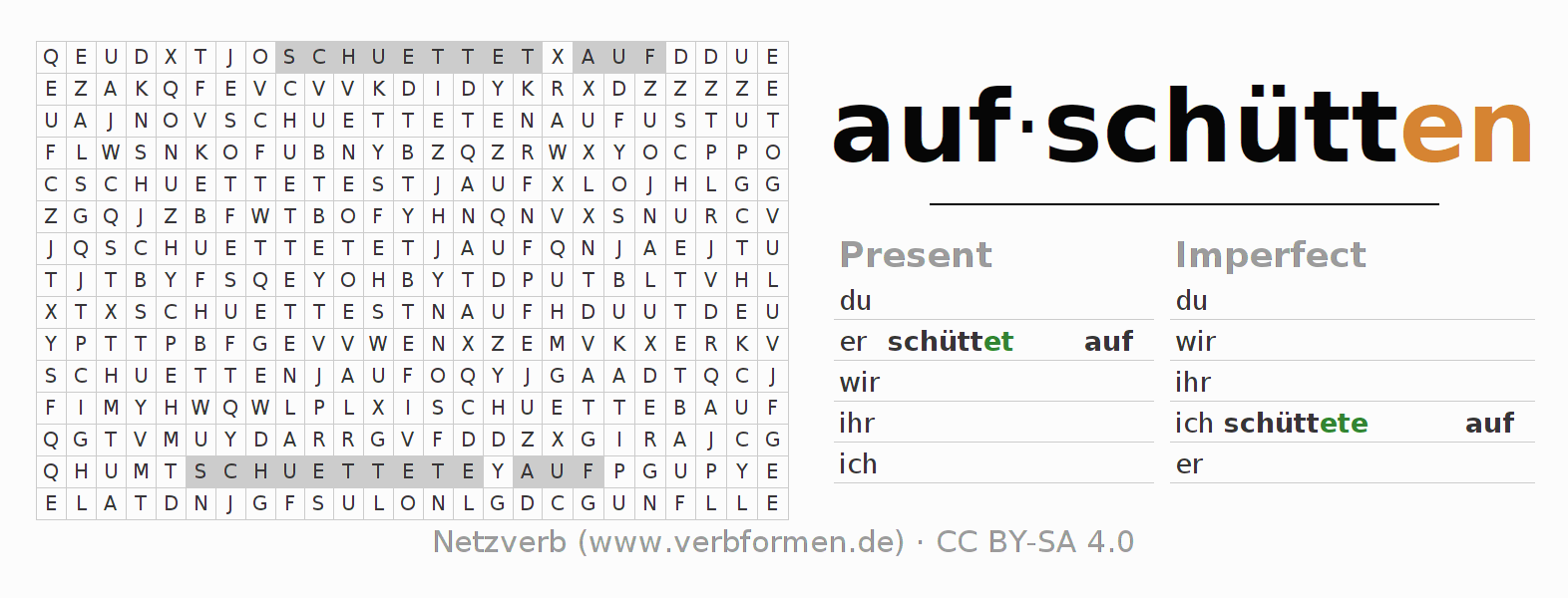 With these search word puzzles you can learn the conjugation of the German verb aufschütten.