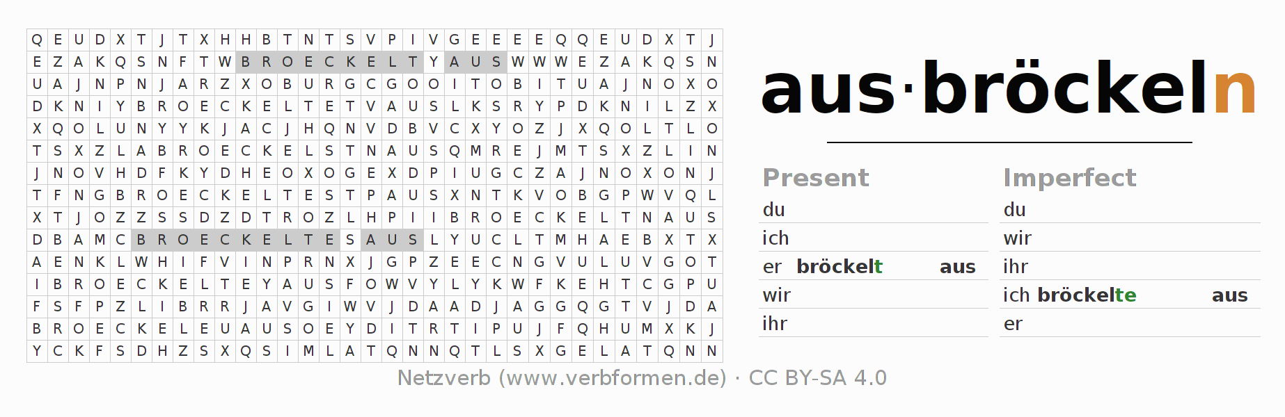 With these search word puzzles you can learn the conjugation of the German verb ausbröckeln.