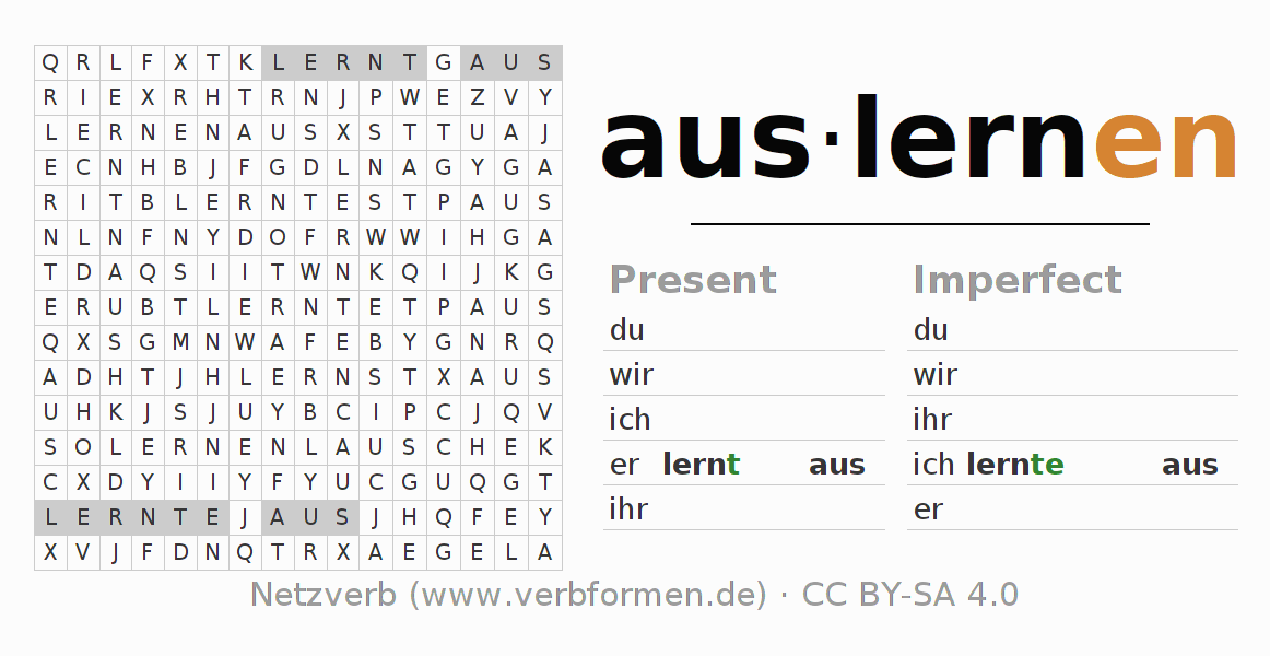 With these search word puzzles you can learn the conjugation of the German verb auslernen.