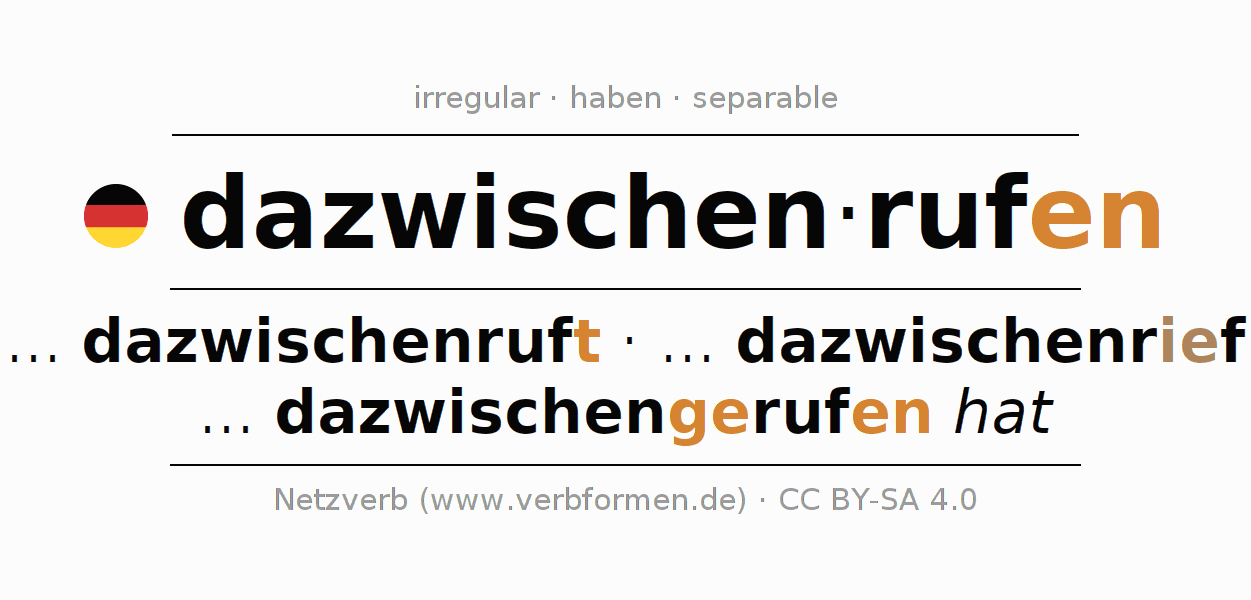 Conjugation tables for all tenses of the verb dazwischenrufen