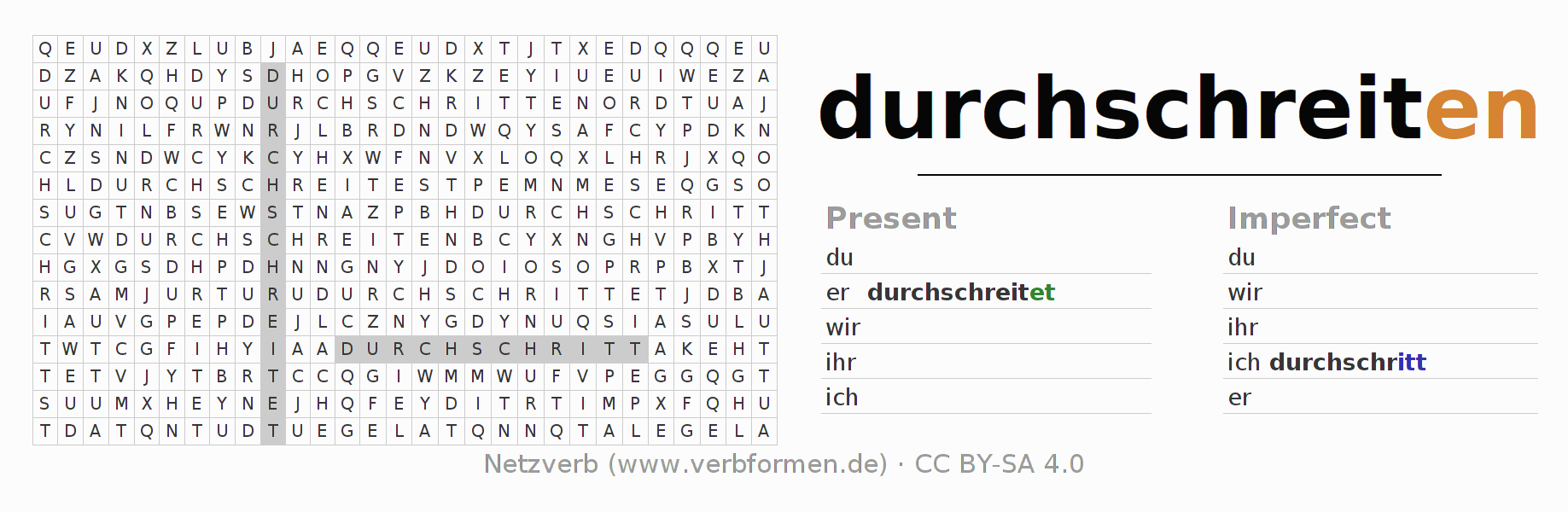 With these search word puzzles you can learn the conjugation of the German verb durchschreiten.