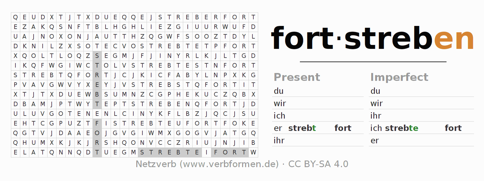 With these search word puzzles you can learn the conjugation of the German verb fortstreben.