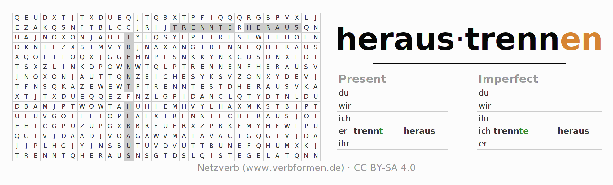 With these search word puzzles you can learn the conjugation of the German verb heraustrennen.