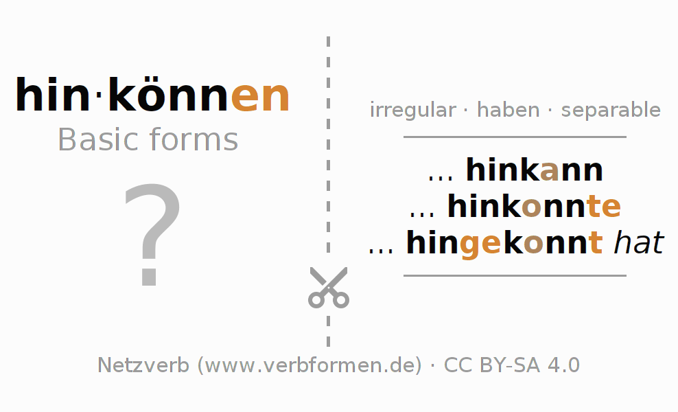 Conjugation tables for all tenses of the verb hinkönnen